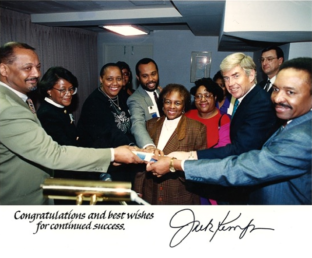 Bob, members of the Center’s Resident Management Leaders program, and Rep. Jack Kemp in the 1980s.